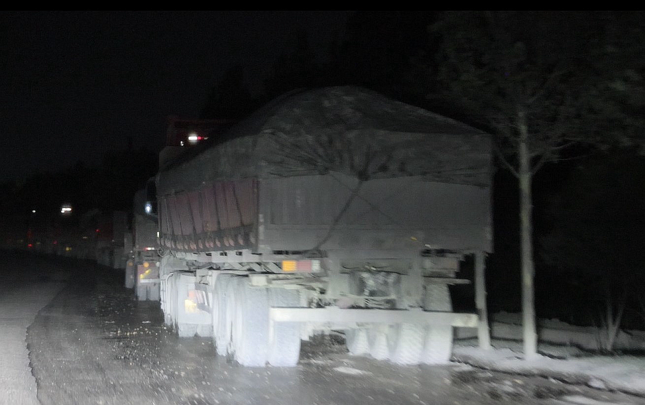 一名货车司机说,他们从永顺铝土公司装载砂石料,运往河南周口的料厂和搅拌站,一路上要经过好几个县,因为装的货都超载,怕路上被交通执法人员和交警检查处罚,所以停车等待车老板的指令再通行。