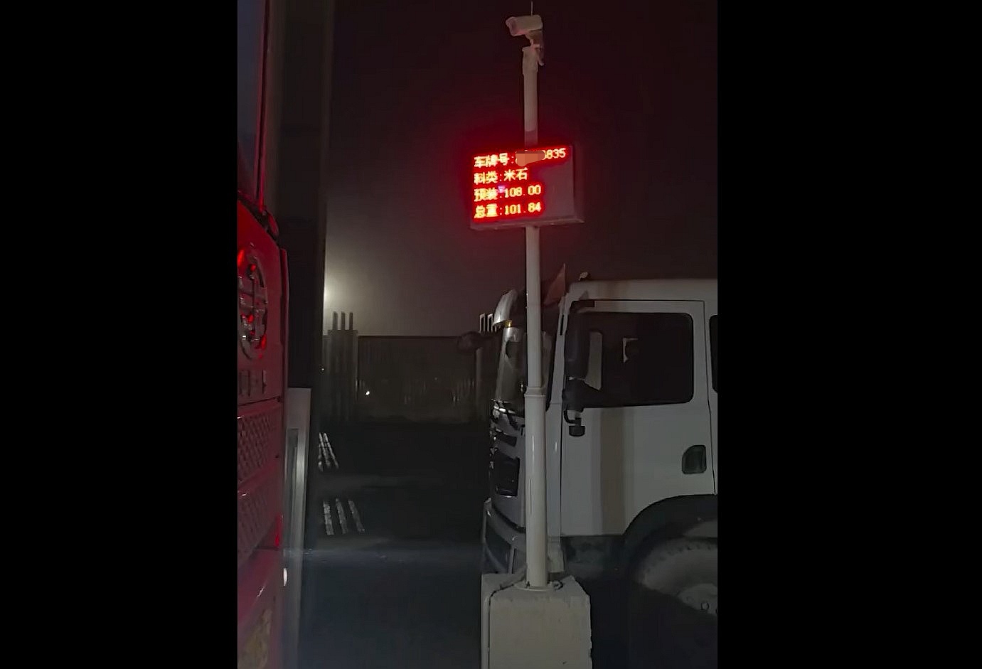 5月24日,永顺铝土公司磅房电子屏显示一辆车装货后总重101.84(吨)。新京报记者 李英强 摄