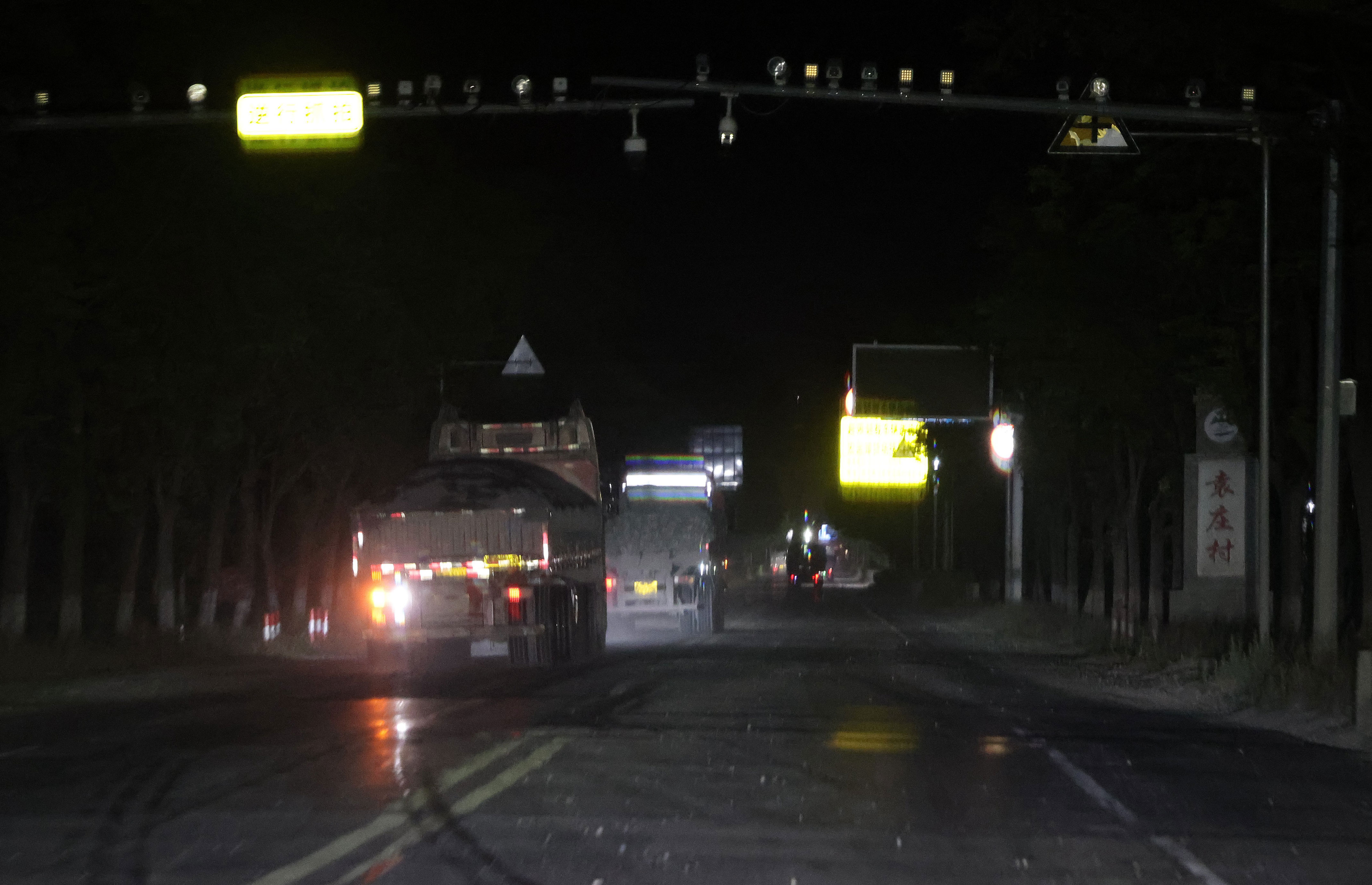 超载车驶出郏县路段,进入许昌市襄城县311国道路段的非现场超限检测点,该检测站同样是电子眼监控无灯光,显示屏黑屏。多辆超载货车通过311国道襄城县丁庄村路口时,均未减速,且闯红灯而过。